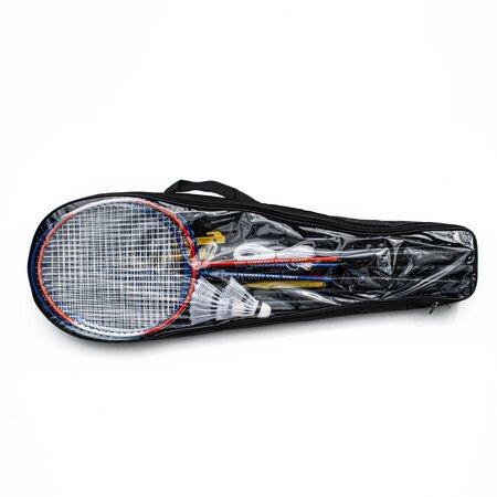 Čtyři rakety: Set obsahuje celkem 4 rakety s odolným iron rámem, které zajišťují dobrou odolnost a stabilitu během hry. Součástí jsou 2 rakety v modré barvě a 2 rakety v červené barvě pro snadné rozlišení mezi hráči.